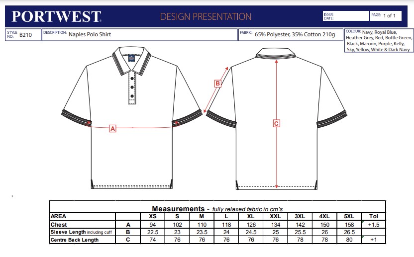 Portwest C3- B210. Naples Rugged workwear Polo C3-B210.