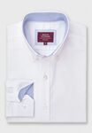 97% cotton, 3% elastane. Tailored fit, long sleeve, button down collar, locker loop, contrast collar.